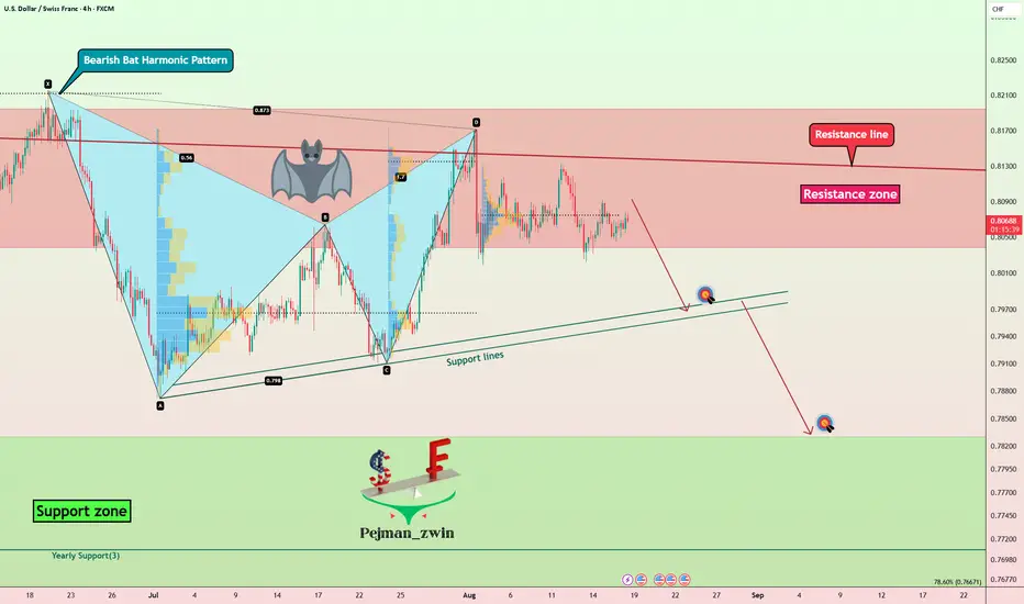 It also looks like USDCHF could continue its downtrend with the help of the Bearish Bat Harmonic Pattern.