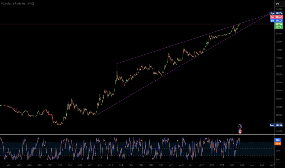 The Indian Rupee (INR) is exhibiting a pronounced, sustained weakness against the US Dollar (USD), pushing the USD/INR pair toward the 88.60 level, even as the global US Dollar Index (DXY) shows signs of softness. This resilience in the USD/INR confirms that domestic and structural headwinds—rather than external dollar strength—are primarily responsible for the Rupee's depreciation. A deep analysis across strategic, economic, and technological domains reveals that geopolitical delays and cautious monetary policy abroad are significantly outweighing any temporary relief from global dollar flows.