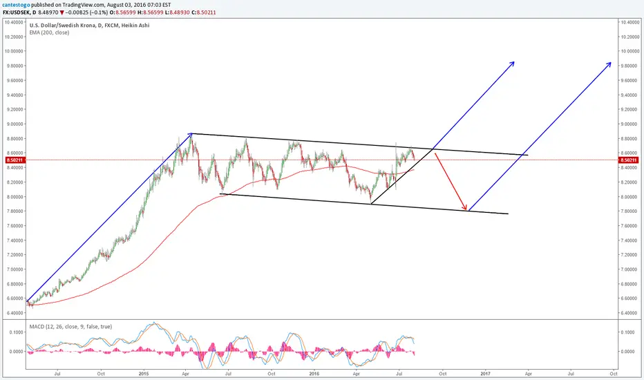 We are completing a long term corrective phase in a downward channel. I'm looking for 2 possible scenarios, in both cases with a breakout to the upside.