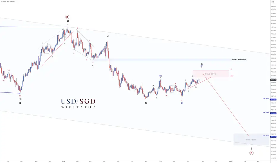 The structure remains intact — Wave 4 invalidation sits just above the 1.32 region. As long as we stay below that level, the bearish setup toward Wave 5 remains valid.