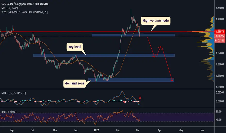 USDSGD now is based below HVN at level 1.3887 which indicates that pair is in distribution phase preparing for coming correction