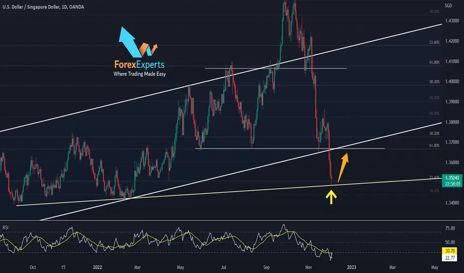 After USDSGD has escaped the ascending channel and the head and shoulders pattern, it is now touching an ascending trend line starting back from Sept 21 and touched again on Feb 22, also touching a 23.6 fib level,