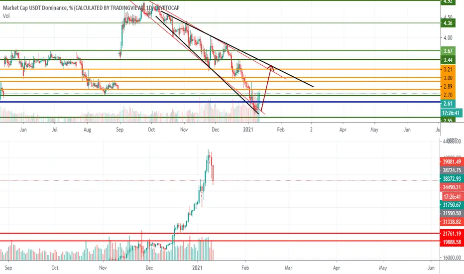 i expected a great correction , above you can see usdt dominance that is in a channel and it reacts to bottom , everytime usdt dominance reacts to bottom price dumps hard , i expect more correction in coming days and then we can join market after miners selloff