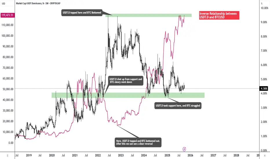 Inverse Relationship between USDT.D and BTCUSD.