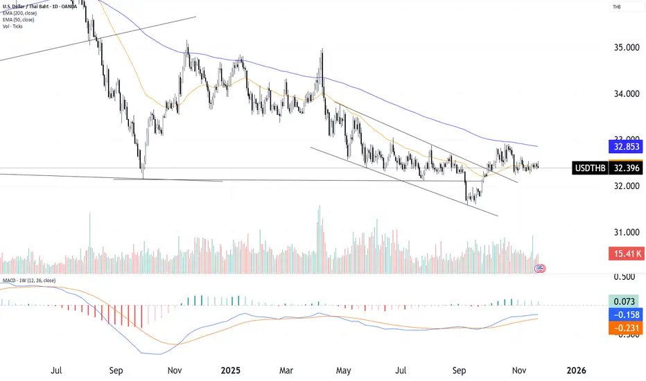 The Thai baht should weaken as the macd turns up with the BOT hinting at lower rates and a weaker thai Baht