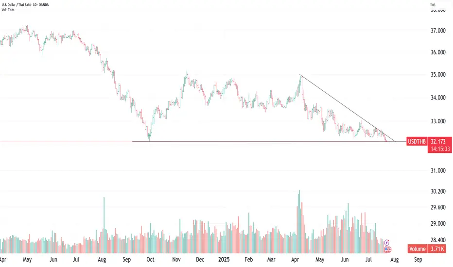 The Thai baht is getting stronger from increased volume supporting the trend