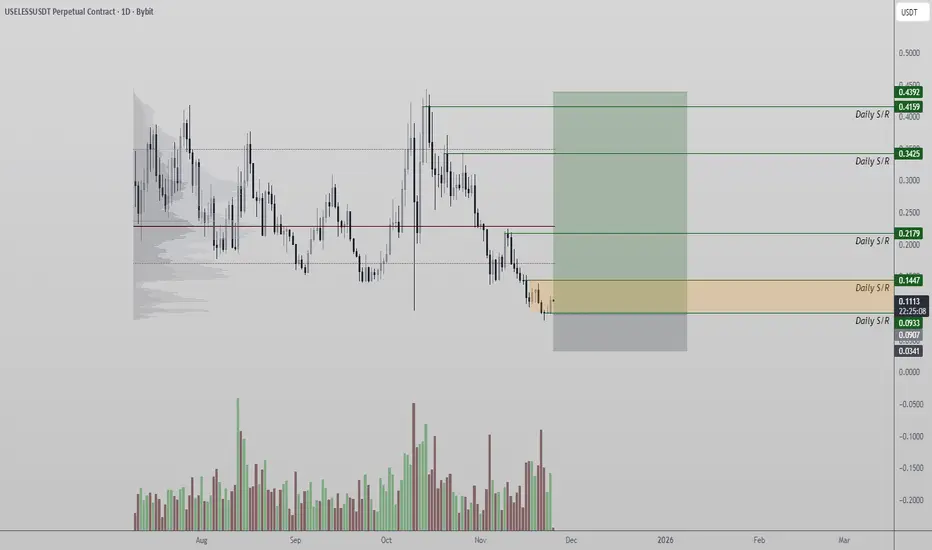 Useless Coin is currently trading around a key support zone, sitting just below last week’s value area and moving through a developing liquidity pocket. This region has historically acted as an important reaction level, and price is now attempting to stabilise within it.