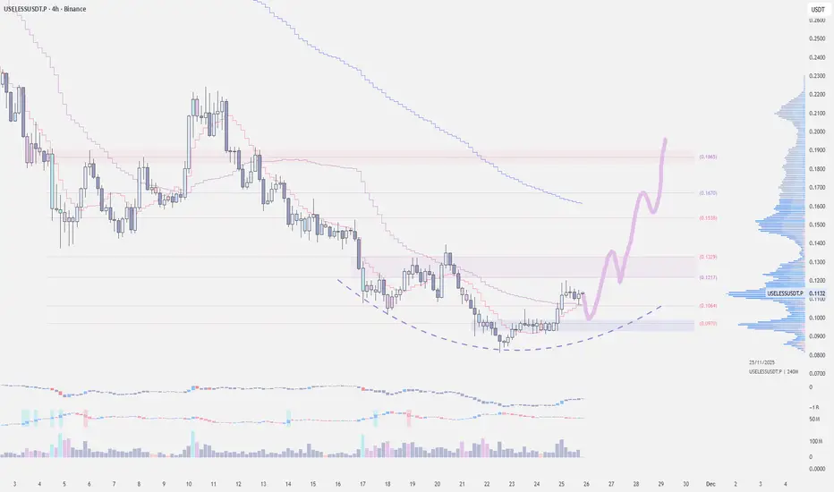 Useless Coin is trading above a key support zone $0.10. This zone often acts as an accumulation base during corrective phases. If price can stabilize and carve a bottoming structure here, it may rotate higher and set the stage for a stronger bullish expansion.