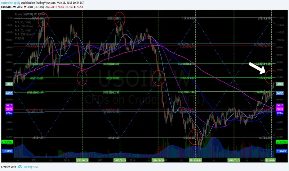 It happened again:Dating back to 2002, 13 of 14 major time cycles on weekly crude oil chart structure seen trend reversal to some extent or another #Oil #OOTT #TimeCycles FX USOIL WTI $CL_F