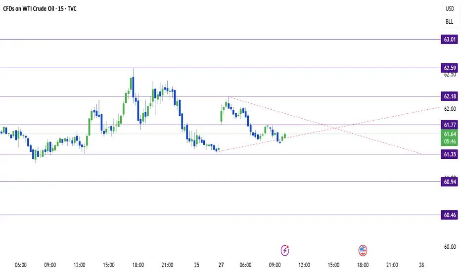 Go "LONG" if it breaks 62.18 and if it also breaks the trendline then can move up till 62.59 and breaking that might lead to 63.01.