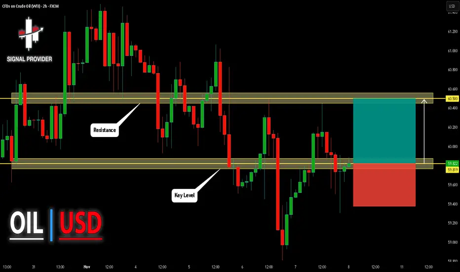 Current market trend & oversold RSI makes me think that buyers will push the price. I will anticipate a bullish movement at least to 60.500 level.