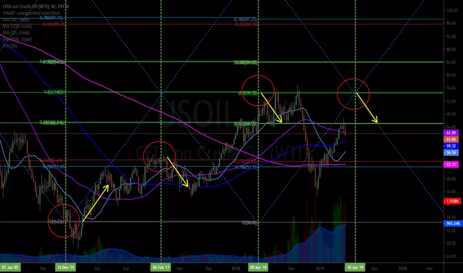 Oil Time Cycle comes in June 10, can it reverse prior? Sure, but is that probable? Not historically, but sure it can. We're watching very close. FX USOIL WTI $CL_F $UWT DDWT #timecycles #Oil #OOTT