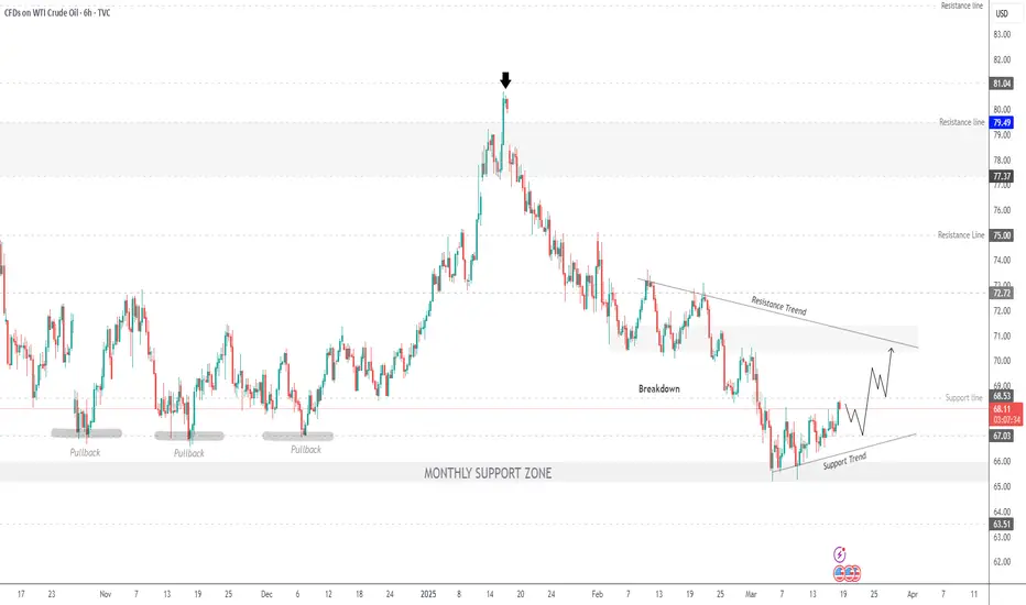 USOIL Live UpdateThe price has pushed up as we mentioned earlier, perfectly following the path of our trend line.
