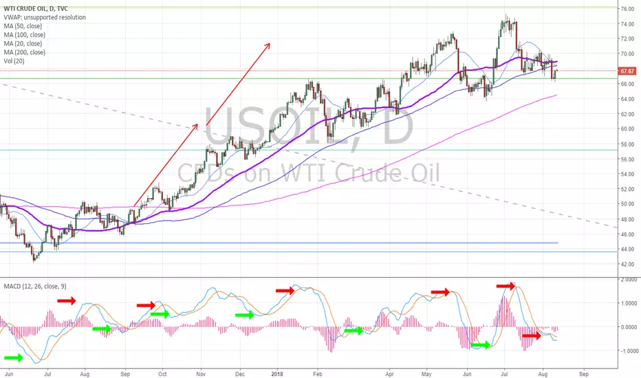 Oil Daily Chart. MACD cross up failed, trade under 50 MA. Bearish trend continues. Aug 12 947 PM FX USOIL WTI USO $UWT DDWT $CL_F #OIL #chart
