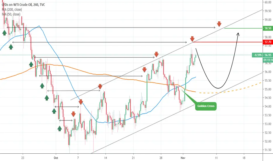 Oil hit our last buy target (57.30) and the 1D Channel Up (RSI = 58.982, MACD = 0.300, Highs/Lows = 1.1300) is near its Higher High trend line. As mentioned since October 16th, the Higher Highs of the Channel are symmetrical with the Lower Lows of September's downtrend (see that idea below):