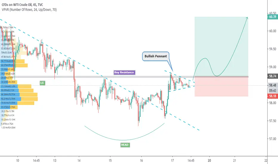 Plan : wait for pennant / key resistance breakout --> wait for prices to bounce off key support --> wait for the rejection candle pattern to form e.g. bullish engulfing , pinbar etc --> BUY