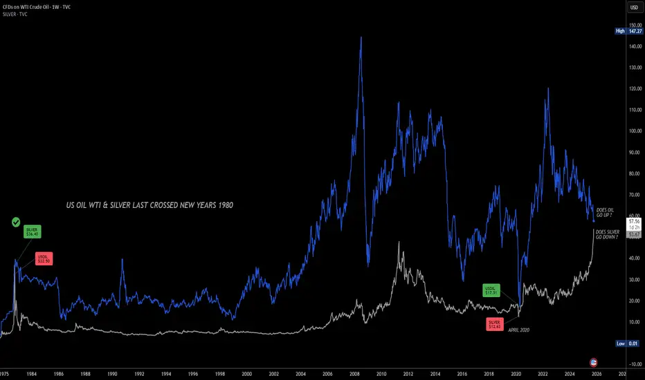 USD) has not crossed that of US Oil WTI since the first three weeks of 1980 ..and not prior going back to 1901 ~ so looking today I have to ask, does Oil go up or Silver down.. and has anyone seen a 5 year running oil deficit ?