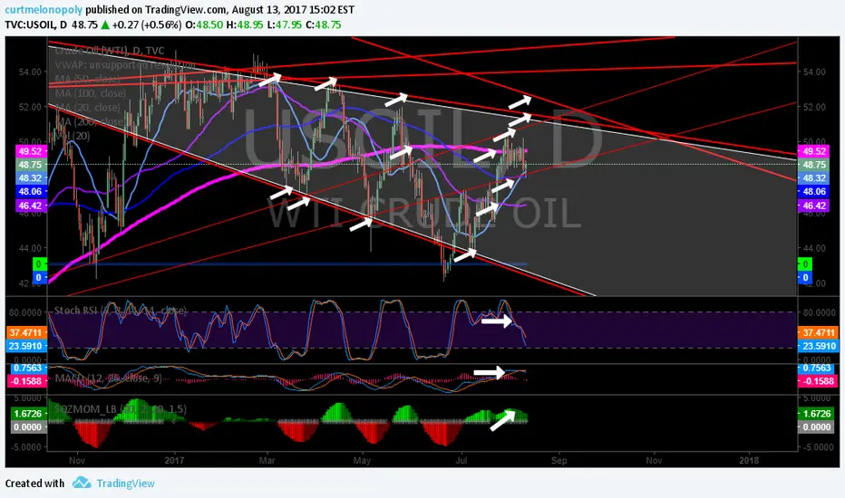 Important areas of consideration on oil chart. MACD turning down SQZMOM slowing Stoch RSI down. FX USOIL WTI #OIL USO $UWT DDWT $CL_F