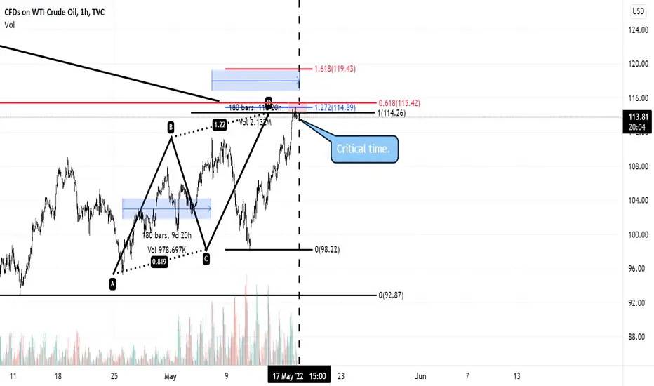 We have a critical turn point coming up which gives us A-B=C-D in time. I will post the AI in the update area with expected trend for the day and we could get a minimal move back down to 105-107 area but possibly more with a bigger correction.