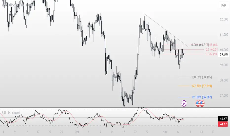 On the 4H timeframe, a bearish pattern has formed after breaking the previous low, followed by a corrective move up to the Fibonacci golden zone.