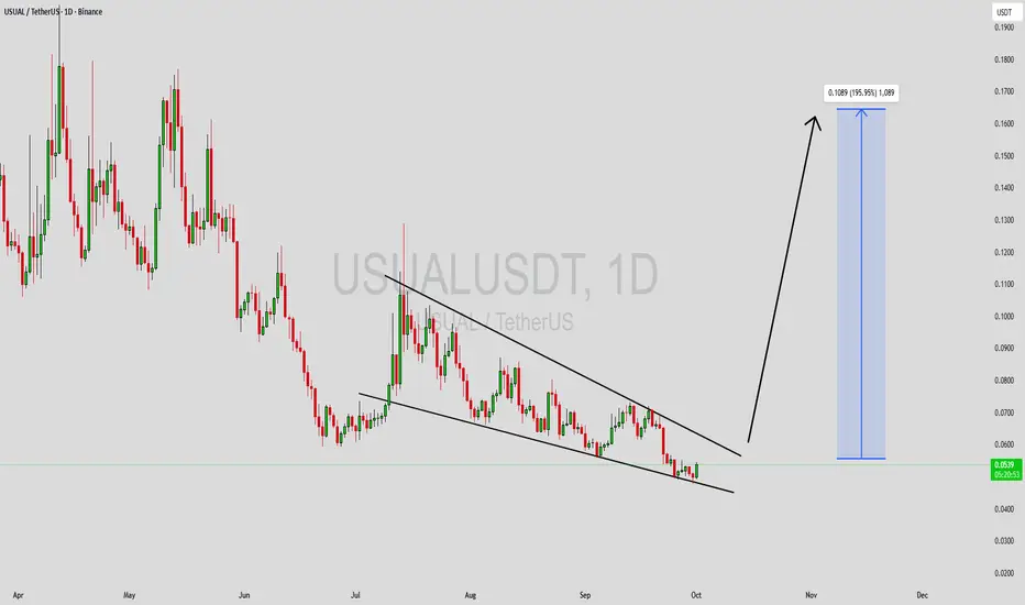 The falling wedge pattern here suggests that USUALUSDT could soon witness a powerful upward surge, potentially delivering gains of 140% to 150%+. Such a setup is attractive to traders and investors who closely follow breakout strategies, as the reward-to-risk ratio looks highly favorable. The volume confirmation adds further confidence, showing that accumulation is already underway in this pair.