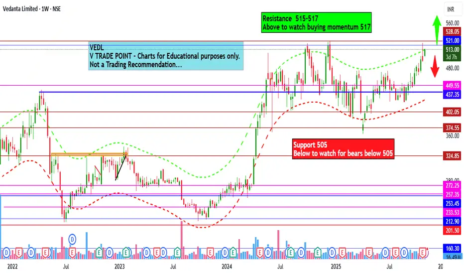 Support area 505 Below 510 gnoring upside momentum for intraday