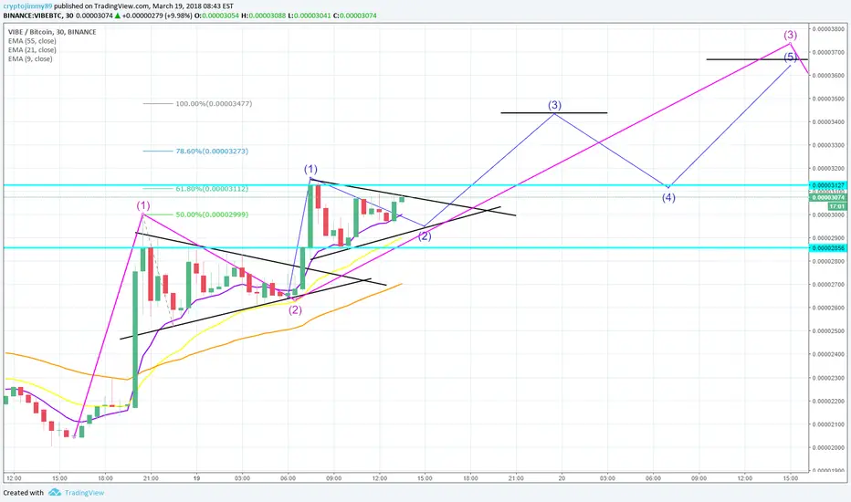 Hey guys, VIBE is currently again in another ascending triangle awaiting another uptrend. Currently part of a bigger wave 3 as seen on the drawing