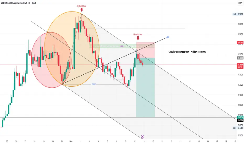 I employ a method known as Circular Decomposition, paired with Andrew's pitchfork, to identify potential price continuations when the market doesn't reach the previous high.