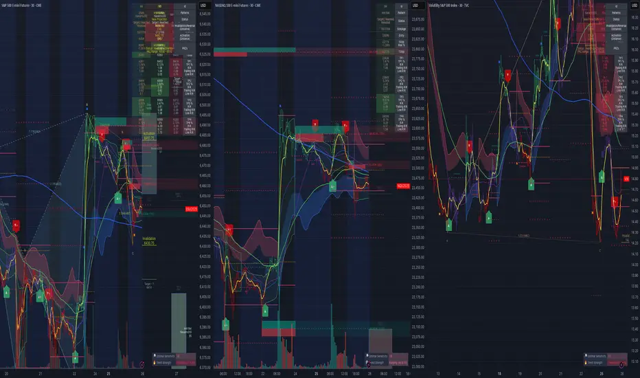 Go long when the EMA 5 crosses above the EMA 65, and exit the long position when it crosses back below. This setup is combined with the harmonic pattern drawing a downward line, and it triggers when price touches the LuxAlgo support band.