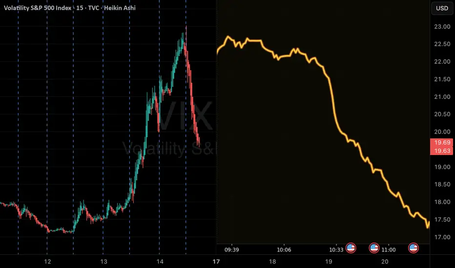 Katy AI forecasts a significant volatility compression, projecting the VIX to drop toward 15.90, a -20.48% expected move.