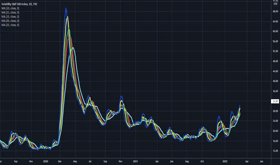 VIX using MAs to cut noise its clear to see there is a pulsing upward move here.