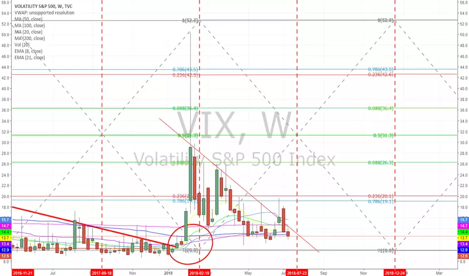 Volatility Index (VIX). Nearing completion of time cycle, watch