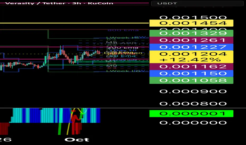1. **Short-Term Breakout (1-4 Weeks):** Price consolidates in a demand zone around $0.0011-$0.0014, then breaks above $0.0015 (near EMA200/previous resistance). This could confirm a 5-wave Elliott impulse or harmonic completion, targeting 20-30% gains to $0.0018-$0.0020. Expect RSI to cross 60 and MACD histogram to flip positive for confirmation.