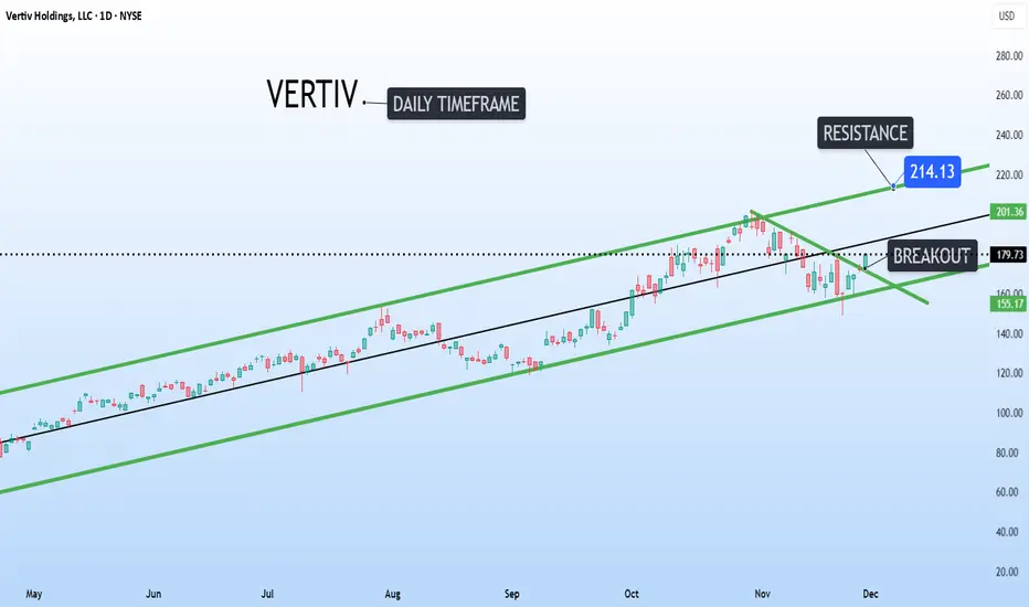 Vertiv Holdings VRT is printing a textbook breakout setup on the daily timeframe.