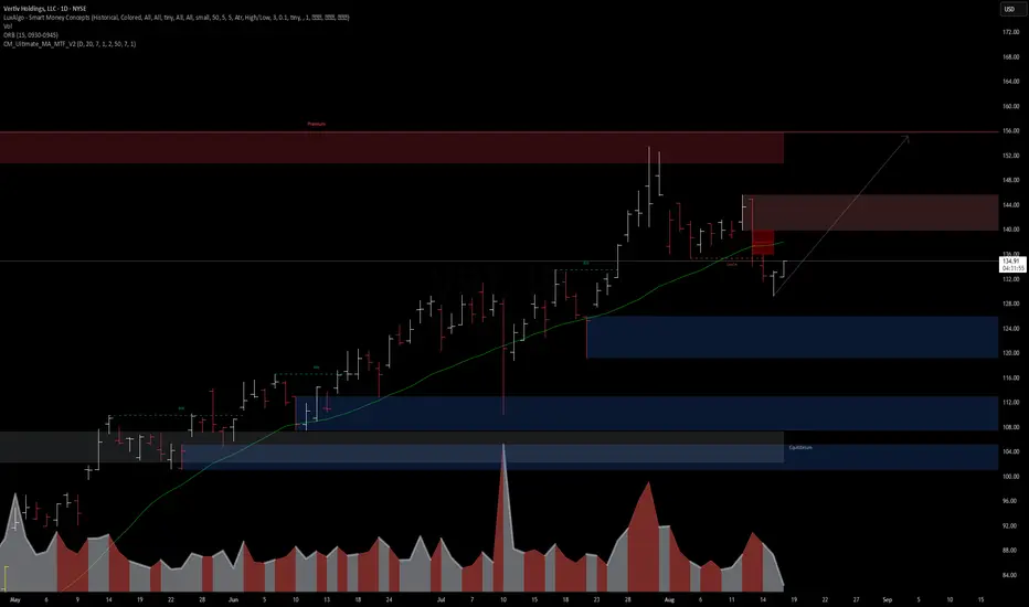 VRT is setting up for continuation toward premium levels. Institutional forecast aligns with smart money structure—providing both statistical and structural confluence. Volatility is high, so scaling in is advised.