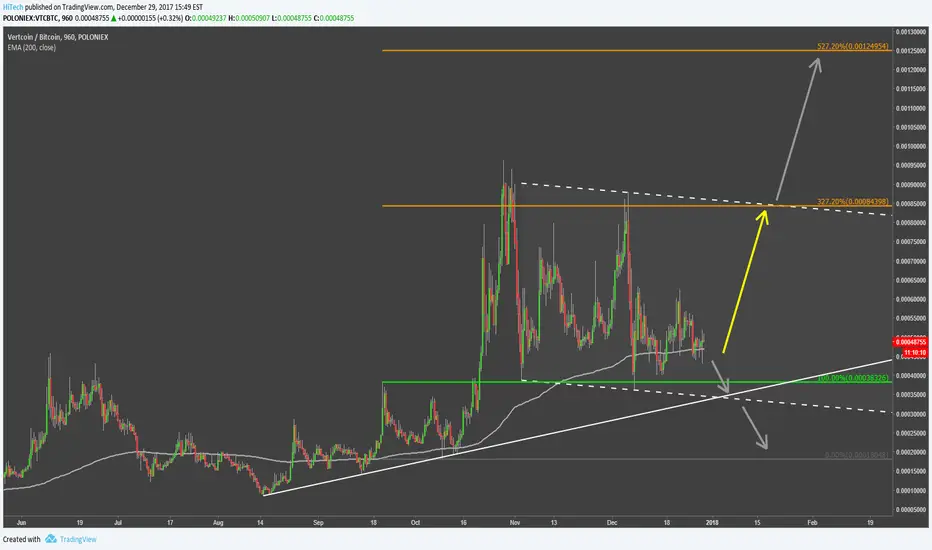 During the past 6 months Vertcoin has been moving upwards against Bitcoin, although at the end of October when it reached the 96k satoshi high, the price dropped strongly. The wave down was stopped at the previous resistance near 40k satoshi.