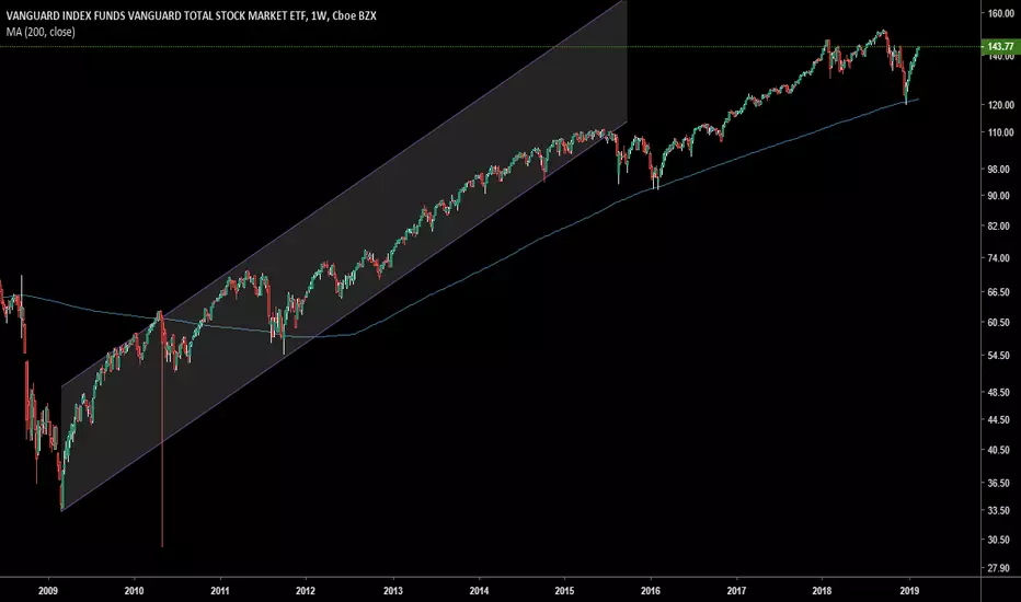 as shown here the last'decisive trendline break' ushered in a correction then the trend continued. calling for a trend reversal off this vti log scale is in my opinion premature. the obly thing that changed from the xmas massacre and this year is the calendar, none of the reasons for the selloff have changed yet , since the calendar, switched we have gone straight up. i say dec was exclusively low volume algo tax harvesting