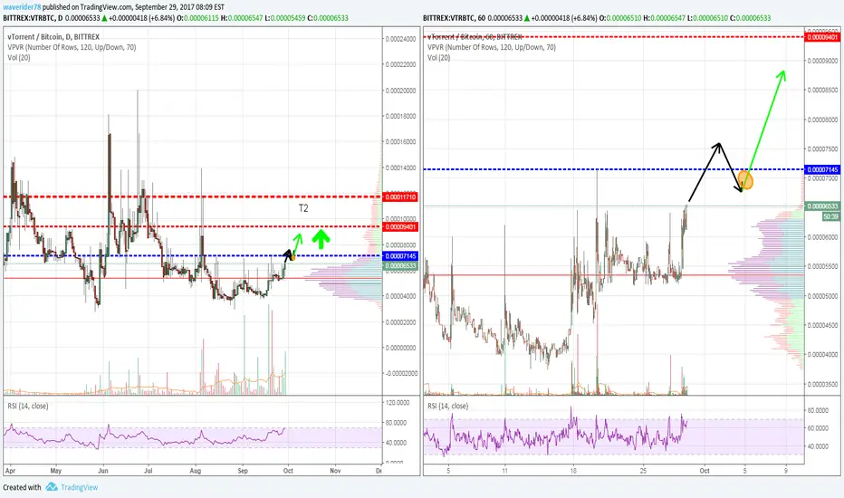VTRBTC on watch today & tomorrow. Holding current levels and breaking above multi-day highs can catapult this one for a nice lift-off. Targets 1 and 2, scale in small after the pop & at retracement, take partial just before first line of resistance.