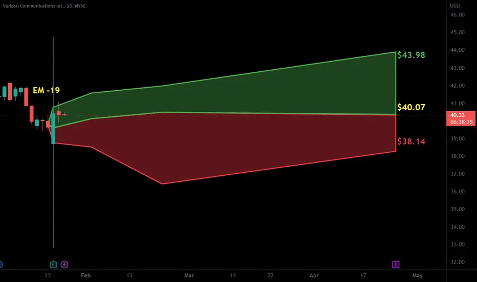 VZ after a Negative over reaction following its earnings release placing the stock in drift C with an expected accuracy of 66.67%.