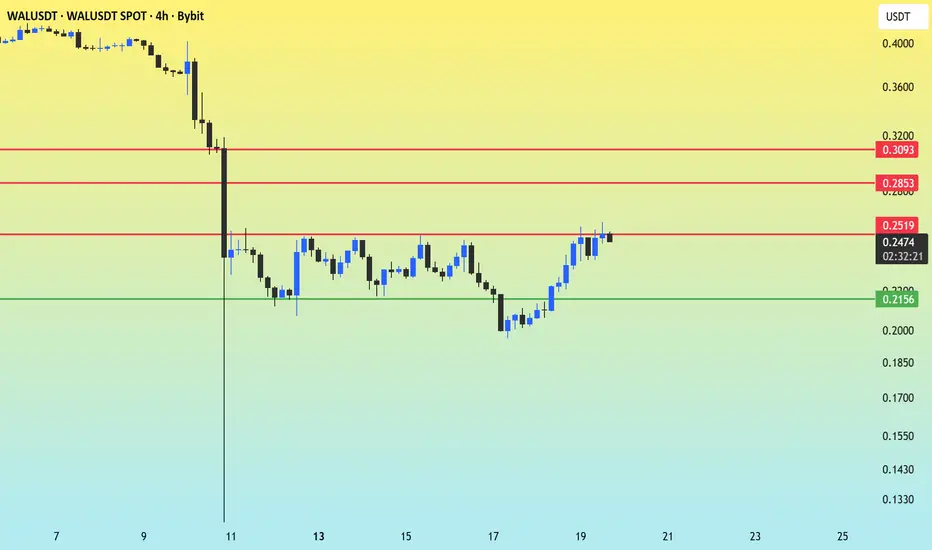The 4-hour chart for WAL/USDT reveals that the asset has experienced significant volatility, characterized by a sharp decline followed by an extended period of consolidation. The price is currently testing a crucial resistance level, suggesting a potential breakout is imminent.