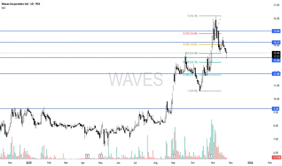 Waves has corrected 50% of its recent rally. Right now it is trading in demand zone and long can be attempted here with stoploss of 11.80.