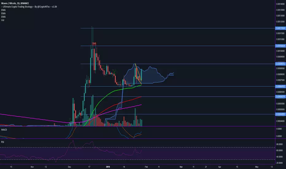 Starting to rise again with MACD, RSI going up and a Buy signal from Ultimate Crypto Trading Strategy. Volume also starting to appear...