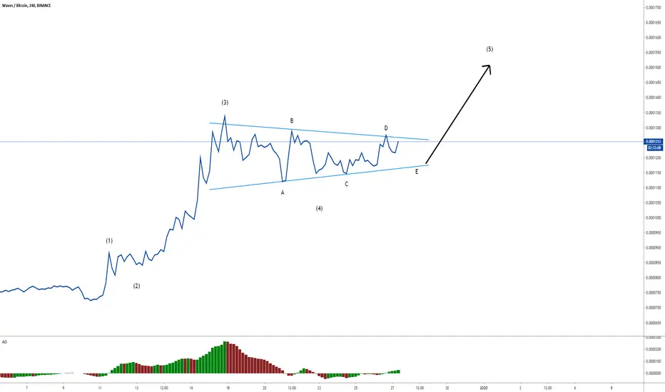 Still expecting another move higher at this point however it may come down first and then bounce up to complete the corrective structure within the triangle.