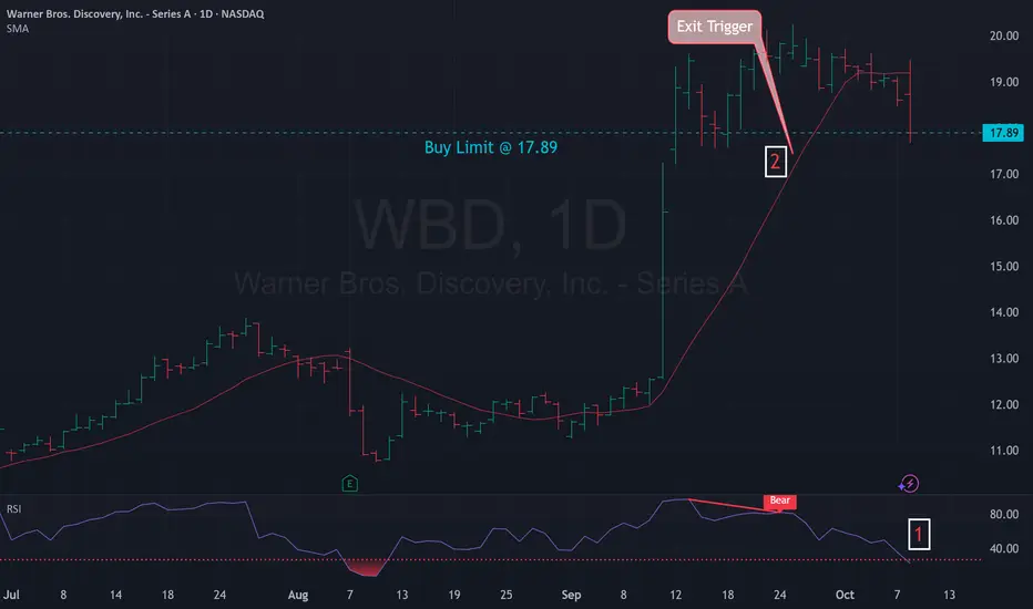 Entry Trigger - RSI has cross below oversold region, enter limit buy at close price