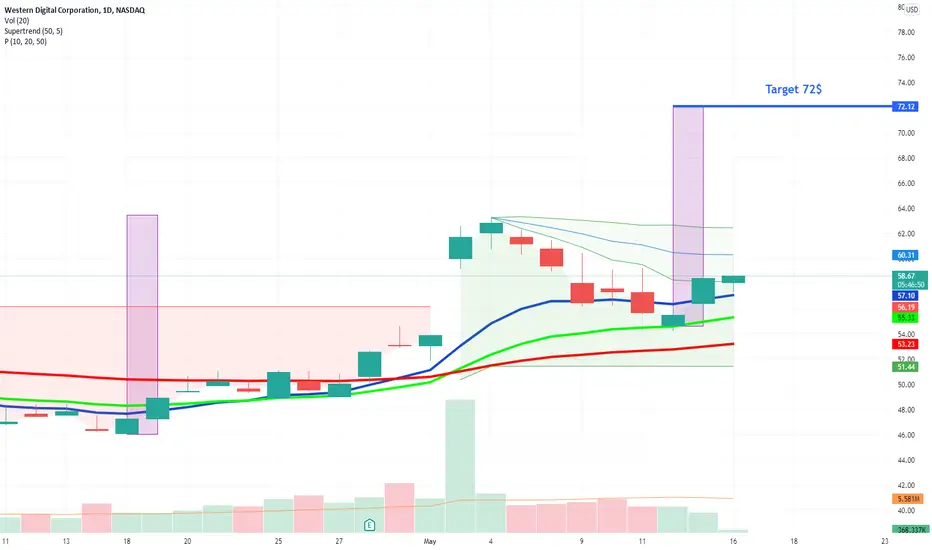 Nice reclaim of lower vwap band after consolidation phase - Target 72$