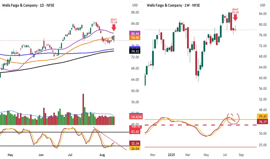 Looking at the daily chart u can see we have lower highs, and engulfing candle. Look closely u have 25 day rolling down bottom arrow. We also broke 50 day ma with vol. We have daily stoch heading down.