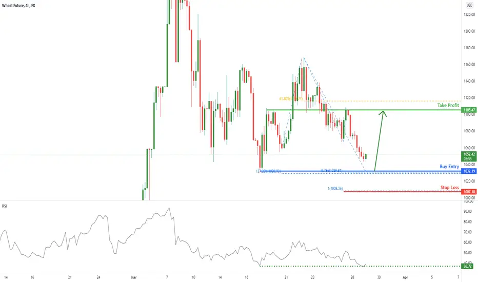 Prices are approaching a pivot. We see the potential for a bounce from our buy entry at 1032.19 which is an area of Fibonacci confluences towards our Take Profit at 1105.47 in line with 61.8% Fibonacci retracement. RSI is at levels where bounces previously occurred.