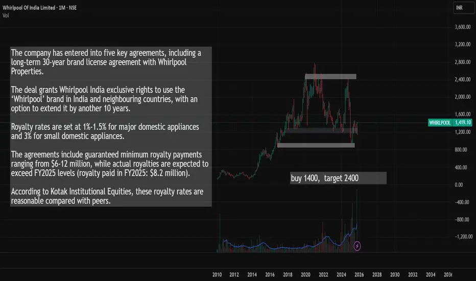 Royalty rates are set at 1%-1.5% for major domestic appliances and 3% for small domestic appliances.