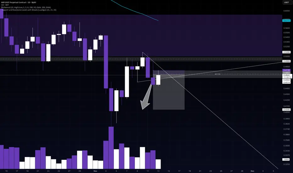 It’s definitely a riskier setup, but WIF is showing potential for another leg down in the coming days.