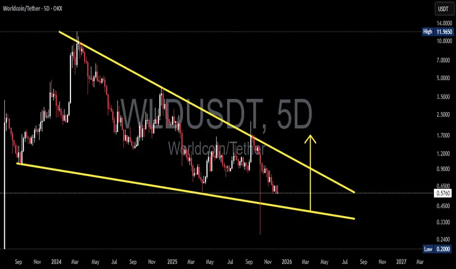 If WLD manages to bounce and break above the upper wedge trendline, it would be the first structural sign that multi-month selling pressure is exhausted.